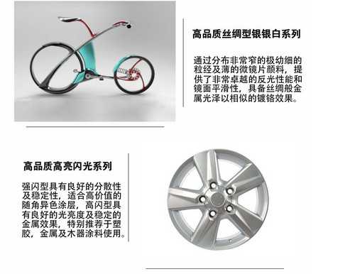 3、一般來說細白型鋁銀漿和仿電鍍鋁銀漿的耐溫性會比粒度大的粗閃銀要好,不過所有的產(chǎn)品像常溫自干或者低溫烘烤都可以達到,某些特殊產(chǎn)品也是可以經(jīng)得住高溫烘烤的。