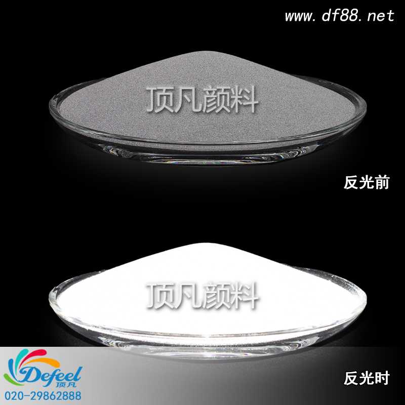 反光粉具有抗氧化程度高、耐高溫、反光效果好的特點,其中分為三種折射率,即:ND≥1.90、ND≥1.93、ND≥2.2規格有200目~800目,顏色主要有銀灰色及白色供選擇。反光粉具有回歸反光的特性并由此產生較強的回歸反射效應,無需外加電源,能將85%的光線直接反射回光源處,回歸反射所造成的反光亮度。