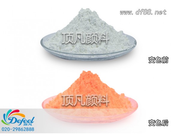 頂凡感光變色粉又稱光變粉、光變顏料、光變色粉等GB005光變橙光變粉其變色原理為吸收特定波長(zhǎng)的紫外線光源,藉由該光源之能量而產(chǎn)生顏色變化變?yōu)槌壬?dāng)特定波長(zhǎng)的紫外光源不在時(shí),即恢復(fù)原來的白顏色。