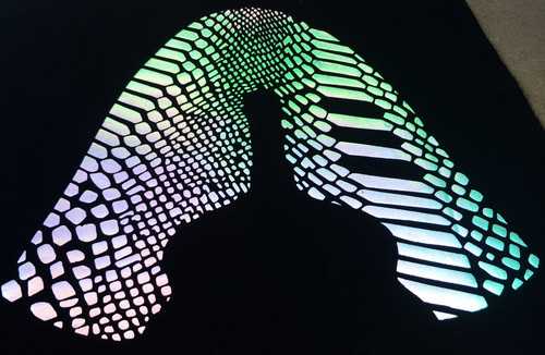 1、先用膠水打底一次 → 2、用銀粉與膠水攪拌均勻印第二次 → 3、直接印反光粉(不用加膠水),→用平壓機將反光粉壓入膠水的半徑厚度即可。