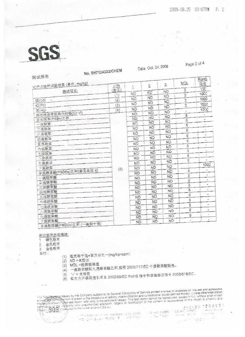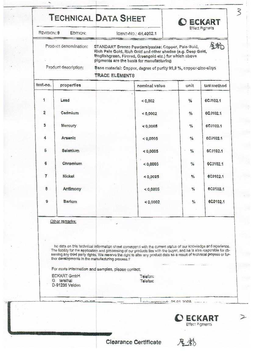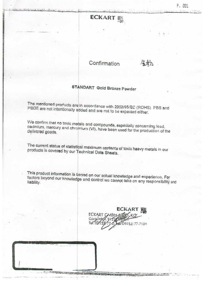 頂凡銅金粉質量檢測報告